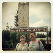 Der Ticketverkäufer ist sehr freundlich. Er schiebt nicht nur die Karten durch den Schalterschacht, sondern erklärt uns auch, dass wir uns um 11:00 Uhr an der Tür Nummer 2 einfinden müssten. Gesagt, getan. Nach einem sehr guten Cappuccino in einer Bar auf dem Areal, stehen wir pünktlich an Tür Nummer 2 und diese wird auch mit nur 10min Verspätung tatsächlich für uns geöffnet. Eine Treppe führt die 60 Meter hinab in die „Grave“, wie die 1938 vom Höhlenforscher Franco Anelli wiederentdeckte erste Höhle genannt wird. Doch die Erkundung der „Grave“ durch Anelli war nur der Anfang einer Entdeckungsreise in die Unterwelt, die bis heute noch nicht abgeschlossen ist, denn immer wieder werden neue Höhlen gefunden. Von der „Grave“ aus erreicht man die schwarze Grotte, deren Gestein sich aufgrund eines Pilzes schwarz gefärbt hat. Wie in allen Höhlen hat man auch hier in den verschiedenen Gesteinsformationen Gebilde zu erkennen geglaubt, die sich dem Auge des Betrachters mal mehr und mal weniger offensichtlich erschließen. Hier in der schwarzen oder auch der „Grotte der Wölfin“ ist es die römische Wölfin, die dereinst die Stadtgründer gesäugt haben soll, welche man in einer Häufung von Tropfsteinen sehen kann. Ich lerne, dass „Konkretion“ scheinbar ein deutsches Wort für Tropfsteingebilde sein muss, denn die Führerin nennt sie beharrlich so. Aber die Höhlen haben noch mehr Bildliches zu bieten: das Bein einer Ballerina, ein Kamel, eine Eule, den Schiefen Turm von Pisa und zum Ende hin auch eine kleine Madonnenfigur. Was auch immer man darüber denken mag, waren diese „Bilder“ in früheren Tagen ohne den komfortablen Betonweg, auf dem wir laufen, und der künstlichen Beleuchtung wichtige Orientierungspunkte auf der unterirdischen Landkarte für die Höhlenforscher.