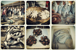 Wir kehren nun auf die Seepromenade, das „Lungomare“, zurück und folgen ihr am „Teatro Margerita“ vorbei zum kleinen Fischmarkt. Obwohl um die Mittagszeit dort nicht mehr viel zu sehen ist, riecht man ihn doch schon von Weitem. Ein paar Tintenfische, Oktopusse, kleinere Barsche, Seeigel und Muscheln werden noch angeboten. Die meisten Verkäufer stehen zusammen unter dem Sonnendach und diskutieren lautstark. Worüber? Das lässt sich nur vermuten, denn die alten Männer sprechen einen strengen Dialekt. Aber es könnte sich bei den Themen durchaus um den Lauf der Geschäfte, bestechliche Politiker oder die nächste Mahlzeit handeln.
