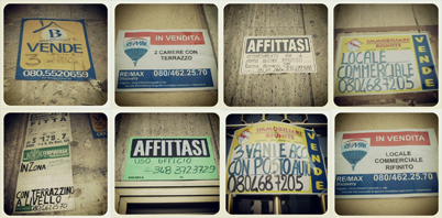 Wohnungsangebote zu finden, ist nicht schwer. Man muss nur die Augen aufhalten. Hier und da hängen Schilder mit der Aufschrift „vendesi“ (zu verkaufen) oder „affittasi“ (zu vermieten) an den Gebäuden. Darunter stehen die Telefonnummer des betreuenden Maklerbüros und weitere Angaben. So kann man lesen, ob es sich um eine Wohnung, ein Ladenlokal oder ein Büro handelt. Man erfährt auch die Zimmeranzahl oder, ob eine Garage oder ein Keller dazugehören. Es gibt auch Verkäufe und Vermietungen über privat, doch diese sind seltener. Wenn ich den ganzen Papierkram bedenke, den wir inzwischen beim Notar angehäuft haben, dann kann ich gut verstehen, dass man sich in so einem Fall an einen Fachmann wendet. Im näheren Umkreis der Wohnung von Luigis Eltern befinden sich gleich drei Maklerbüros, die einem bei der Immobilienfindung behilflich sind. Im Internet finde man auch einige Angebote.
