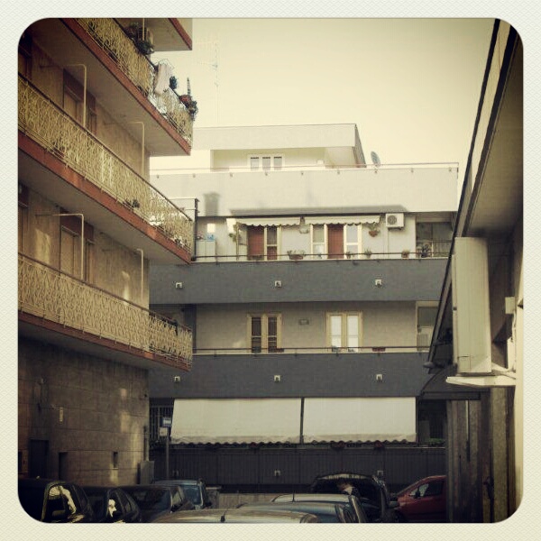 Triggiano besteht neben einem Bahnhof und einem kleinen Altstadtkern aus circa vier großen Hauptstraßen gesäumt von wie zufällig aus der Bausteinkiste gekippten Wohnblöcken. In den 70er und 80er Jahren hat mal jemand versucht, eine gewisse Regelmäßigkeit in den Stadtplan zu bringen, denn die Straßen rund um den Bahnhof verlaufen parrallel. Inzwischen muss man jedoch wieder davon abgekommen sein. Mir scheint es, als wurde in letzter Zeit immer gerade dort gebaut, wo ein Stück Land frei wurde. Die Bautätigkeit ist in den letzten Jahren stark gestiegen und alle paar Monate wird ein neuer „palazzo“ (Wohngebäude) fertig. Die Wohnungen darin sind meist schon verkauft, bevor der Bau abgeschlossen ist, denn viele ziehen aus dem teuren Bari lieber in einen Vorort, in dem man für die gleiche Wohnungsgröße ein Drittel weniger bezahlt als in der Stadt. Dazu kommt, dass die Wohnblöcke nicht nur mit Wohnungen sondern auch mit Geschäfträumen geplant werden, so dass die Grundversorung im nahen Umkreis immer gesichert ist.