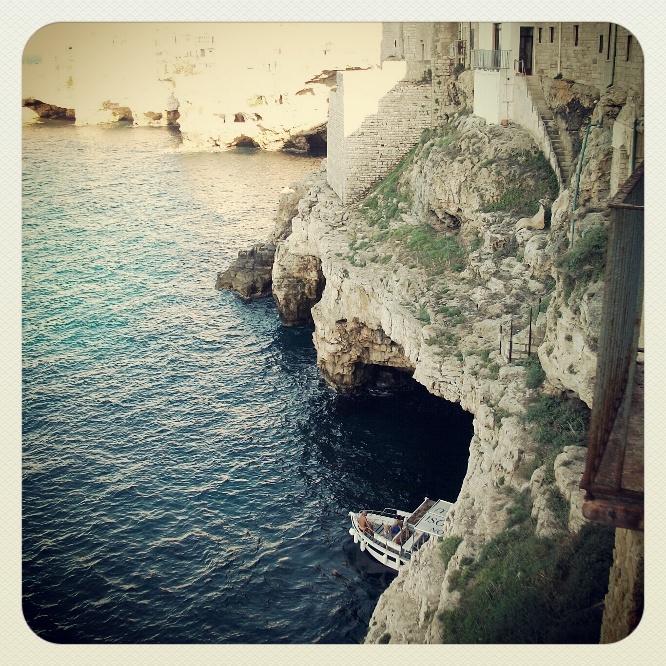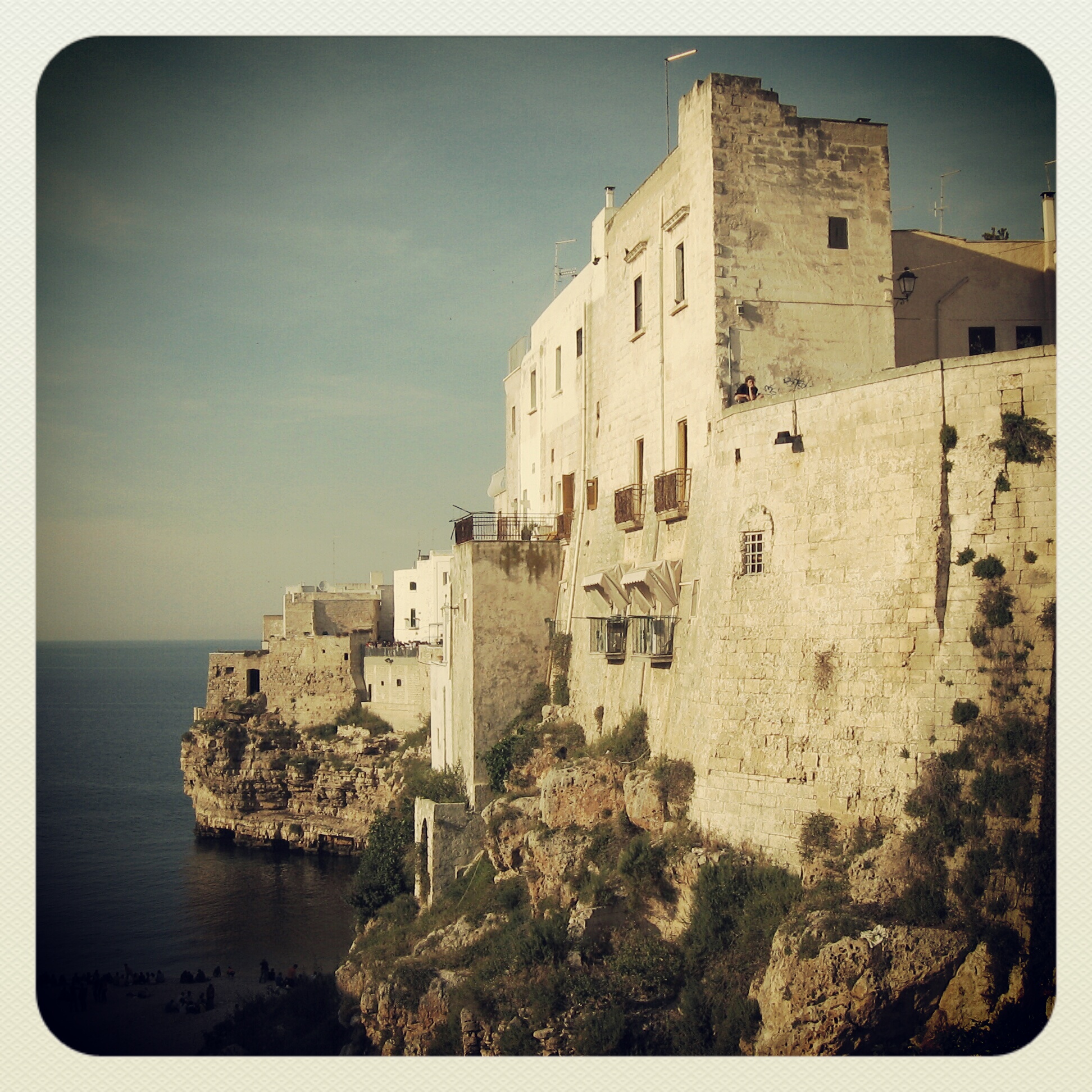IMG_20121220_141405Etwa zwanzig Autominuten südlich von Bari wagt sich das Städchen Polignano a Mare mit seiner Altstadt bis an den Rand  schroffer Klippen vor, ja, fast scheint es sich sogar ins Meer hinein stürzen zu wollen. Schon allein aufgrund dieser Lage ist die kleine Stadt sehenswert und außerdem gerade groß genug, um sich einen Nachmittag darin zu vertreiben. Ich habe besonders schöne Erinnerungen an einen Junitag vor sieben Jahren in Polignano, an dem Luigis Cousine ihrem Mann in dieser bezaubernden Kulisse aus dem 14. bis 16. Jahrhundert das Jawort gegeben hat. An diesem Tag mit seiner ganz besonderen Atmosphäre habe ich mich in Polignano verliebt und natürlich ist auch Michy sofort dabei, als wir uns an einem warmen Nachmittag im November dorthin aufmachen wollen.
