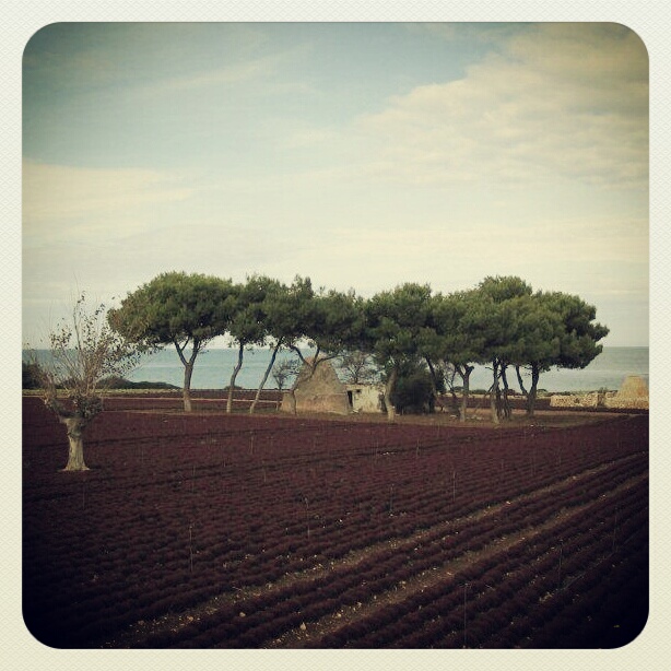 Wir nehmen die Autobahn (S 16) in Richtung Brindisi, fahren jedoch schon unmittelbar nach Mola diIMG_20130120_183304 Bari wieder von ihr herunter und auf einer schmalen Küstenstraße weiter, welche die gleiche Richtung nimmt. Auf dem Weg nach Polignano passiert man hier zahlreiche einzeln stehende Trulli auf gepflegten Feldern, hinter denen sch malerisch das Meer bis zum Horizont erstreckt. Da die Straße nur mäßig befahren ist, wenn sich nicht gerade Sommers die Autokolonnen aus der Stadt in Richtung Meer wälzen, kann man auch relativ gefahrlos anhalten und ein paar Eindrücke fotografisch festhalten.