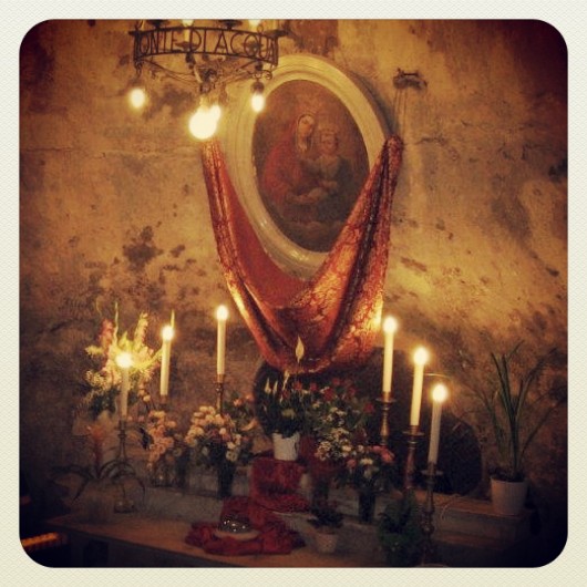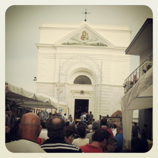 IMG_20130828_142112“Die Madonna del Pozzo ist eine der wichtigsten Heiligen,” antwortete Luigi völlig unüberrascht und mir wurde schlagartig klar, dass ich mal wieder an eine dieser katholischen Eigenarten geraten war, die mit einer oder mehreren merkwürdigen Geschichten zusammenhängen mussten. Diese erzählte mir Luigi dann, während wir eine halbe Stunde an der Kapelle der Madonna anstanden, um uns den besagten Brunnen und die Ikone ansehen zu können.
