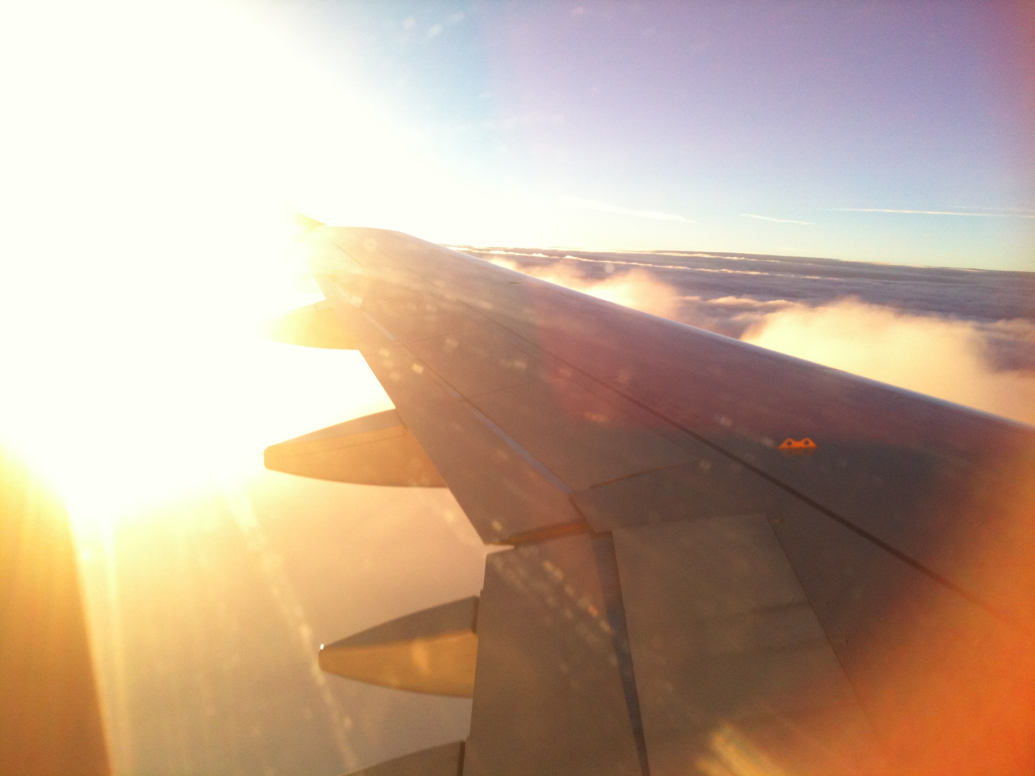Nachdem ich auf den Hilferuf nach “einer anderen Farbe als grau” von Eine handvoll Dackel reagiert hatte und ein Sonnenuntergangsfoto für Dackel Dendes Frauchen im Hohen Norden Deutschlands gepostet hatte, schickte Maria aus Deutschland ein ganz tolles Foto von einem Sonnenuntergang, den sie aus einem Flugzeug fotografiert hat. Traumhaft, nicht wahr?