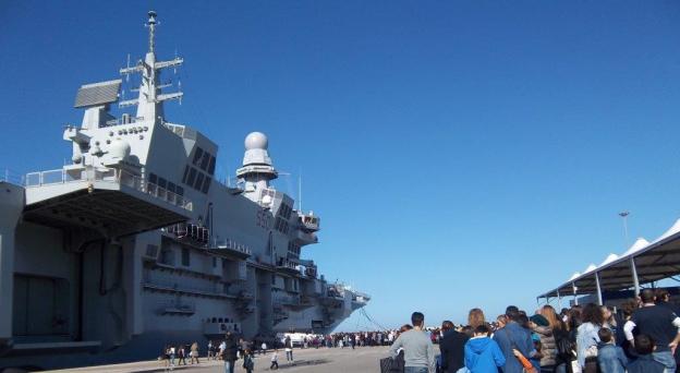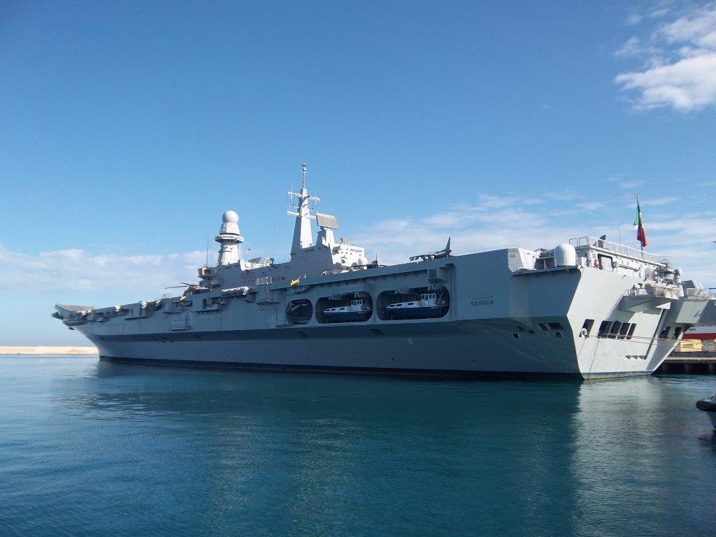 Doch als Luigi am letzten Wochenende vorschlug, das schöne Sonntagswetter und die Möglichkeit zu nutzen, die Cavour, den größten Flugzeugträger der italienischen Marine, zu besichtigen, war ich sofort dabei. Zwei Tage lang lag dieser Ozeanriese nämlich zum ersten Mal im Fährhafen von Bari und war zur kostenlosen Besichtigung freigegeben. Den einzigen Flugzeugträger, den ich bis dahin in meinem Leben bewusst wahr genommen hatte, war der auf dem Tom Cruise dazumal in seinem Erfolgsfilm „Top Gun“ Dienst getan hatte. Aber ehrlich, sooo groß wirkte das Schiff da gar nicht, was aber auch an unserem damals noch sehr kleinen Fernseher gelegen haben könnte.