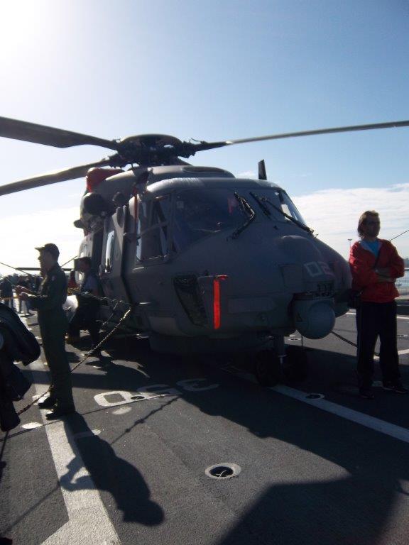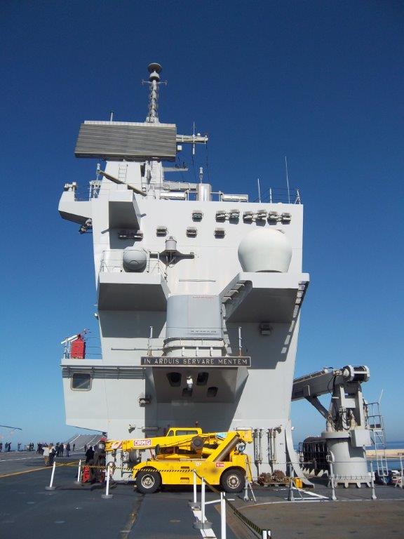Scheinbar hatte man keine Angst vor Besuchern, denn die Taschenkontrolle war weniger streng als auf einem Flughafen und Ausweise musste man schon gar nicht vorzeigen. Aber natürlich wurden wir nur in einen sehr begrenzten Teil des 244m langen Schiffs gelassen, denn der normale Betrieb mit über 600 Männern und Frauen an Bord ging auch in diesen Tagen weiter.