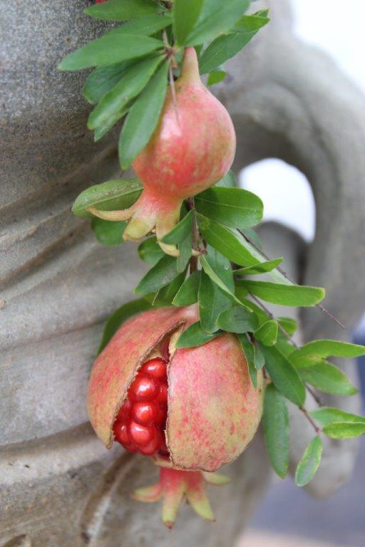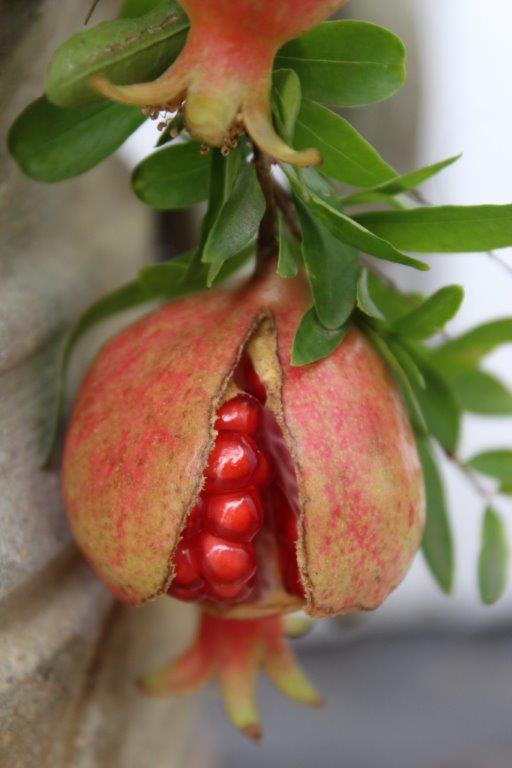 Granat 1Auch wenn manche Zeitgenossen bei meinem Granatapfel-Beitrag zunächst einen militärischen Hintergrund zu vermuten scheinen, hier noch einmal der fotografische Beweis: Granatapfel hat nichts mit Granaten zu tun. Der Name verweist auf die granatrote Farbe des lecker saftigen Innenlebens der Frucht. Das spärliche Fruchtfleisch umhüllt leider ziemlich fiese, kleine Kerne. Ausgepresst kann man den Saft jedoch sehr gut genießen und als Konfitüre macht er sich bestimmt auch gut.