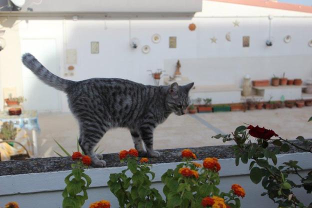 Damit hat sie hier auf dem Dach unseres Palazzos ein Reich von mindestens 700 qm, in dem sie regelmäßig Blumenkübel umgräbt, Parcours übt und auf den Mauern ihren „Catwalk“ vorführt.