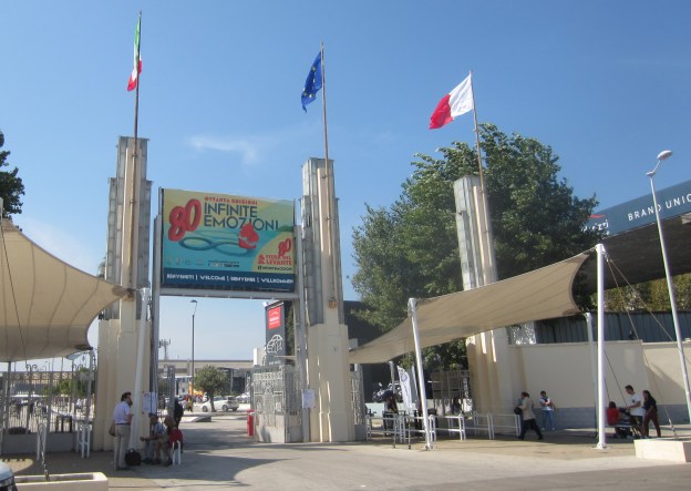 In diesem Jahr spielte das Wetter den Organisatoren perfekt in die Hände. Es regnete die ganze Vorwoche und vom 10. bis 18. September genossen wir warmes Spätsommerwetter. Luigi und ich nutzten den frühen Nachmittag, als die meisten Italiener am Mittagstisch saßen, um die Messe zu besuchen. Im Gegensatz zu allem, was man über italienische Unorganisiertheit hört, ist die Fiera del Levante bestens organisiert. In der Peripherie Baris, z.B. unweit des Stadtstrandes „Pane e Pomodoro“, befinden sich Park & Ride – Parkplätze von denen im Zehnminutentakt Busse zum Haupteingang des Messegeländes abfahren. Der Parkplatz mit dem Busticket für Hin- und Rückfahrt kostet 1 Euro. Dafür bekommt man sogar noch eine Ermäßigung auf das Eintrittsticket und zahlt so für den Messebesuch nur 1,50 Euro pro Person.