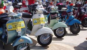 Kein Wunder also, dass sich Vespafreunde aus ganz Apulien am letzten Wochenende nach Ceglie Messapica aufgemacht haben, wo ein nationales Vespatreffen stattgefunden hat. Unter einem strahlend blauen Himmel drängten sich die auf Hochglanz polierten Roller unter dem Uhrenturm von Ceglie dicht an dicht. Es schien als habe jeder regionale Vespa-Club im Umkreis von zwei Stunden eine Abordnung geschickt, denn neben Oria, Lecce oder Canosa waren auch Roller aus Bari vertreten, wie man den Vereinsschildern entnehmen konnte.