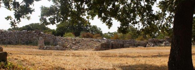Die Peuketier hatten den Ort ihrer Siedlung strategisch klug gewählt: Vom fast 400 m über dem Meeresspiegel liegenden Gipfel des Hügels aus hat man eine kilometerweite Sicht ins Umland. Eine hochgelegene Ebene umgeben von schroffen, steilen Hängen bot gleichzeitig die Möglichkeit zur landwirtschaftlichen Versorgung und leichten Verteidigung. Ein Karsttal weist darauf hin, dass es dereinst auch einen kleinen Fluss gegeben haben muss, der wahrscheinlich sogar schiffbar war. Die Vegetation zeigt noch heute eine gesunde Vielfalt von Bäumen wie Eichen und Steineichen mit dichtem Unterwuchs, wo man gerade nicht gräbt und wachsen lässt. Bildtafeln machen an dieser Stelle die botanisch weniger bewanderten Besucher wie uns auf besondere Pflanzen und Bäume aufmerksam.