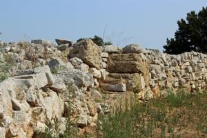 Gegen diese Bedeutungslosigkeit arbeiten die Archäologen heute wieder. Im Moment leider nur die Praktikanten der Uni von Bari, die gelegentlich in der oberen Stadt (Akropolis) graben. Am kleinen Parkplatz befindet sich ein Besucherzentrum, welches seine Bezeichnung nur deshalb verdient, weil ein netter Kustode einem das Tor öffnet, wenn man klingelt. Bei unserem Besuch am Sonntag zeigte dieser sich leicht zerknirscht und entschuldigte sich dafür, dass man die Eintrittskarte im Kastell von Gioia kaufen müsse, welches aber an diesem Tag zufällig geschlossen habe. Mal davon abgesehen, dass eine 5 km weit entfernter Ticketschalter bei zeitgleicher Anwesenheit eines Geländeaufsehers etwas eigenwillig erscheint, hatten wir Glück: Der freundliche Herr ließ uns für lau hinein, gab uns einen Lageplan und ein Basecap für Davide und wies uns grob die Richtung.