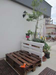 … und hat in diesem Jahr ein Sofa aus Paletten bekommen, dem jedoch die Kissen fehlen, weil die Bezüge noch nicht fertig genäht sind.