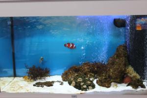 Dennoch musste man mit geringen Erwartungen an den Besuch herangehen. Ich finde, so mancher Hobbyaquarianer hat im heimischen Wohnzimmer beeindruckendere Wassertanks zu bieten. Doch da der obligatorische Clownsfisch nicht fehlte, war unser Sohn bereits nach ein paar Schritten im recht leeren weitläufigen Ausstellungsraum hochzufrieden, was seine begeisterten „Nemo! Nemo!“-Rufe deutlich zeigten.