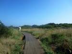 Auf einem Bretterweg geht es durch die Dünen hindurch zum Strand „Pilone“ bei Ostuni.