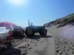 Außerdem sieht man auch mal, dass fleißige Traktorfahrer schon lange vor den ersten Badenden dabei sind, den Strand zu putzen.