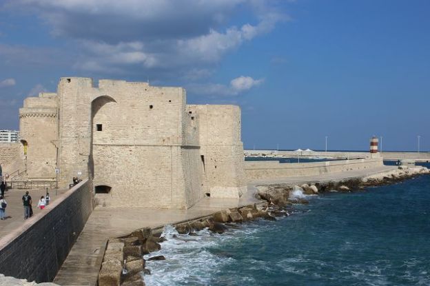 Vor dem Stadtschloss, einem Kastell aus dem 16. Jahrhundert, liegt malerisch der Hafen mit Fischkuttern und kleinen Fischerbooten. Anlässlich einer im Kastell stattfindenden Fotoausstellung wurden großformatige Fotos auf viele historische Gebäude Monopolis aufgebracht und geben den alten Mauern einen zusätzlichen Aufmerksamkeitswert. Eine schöne Idee!