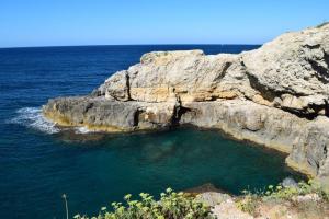 Santa Maria de Leuca ist heute ein beliebter Kurort mit Thermalbädern. Doch schon in der Stein- und später in der Bronzezeit siedelten hier Menschen in den zahlreichen Höhlen im porösen Kalkstein. Heute sind diese wichtige Touristenatraktionen. Außerdem war die Stadt Zeuge eines bdeutungsvollen historischen Ereignisses, als vor 1941 und damit vor gar nicht allzulanger Zeit hier die apulischen Wasserwerke mit ihrem Jahrhundertwerk, einer ganz Apulien durchquerenden Wasserleitung im südlichsten Süden angelangten. Das wurde mit der Errichtung eines monumentalen Wasserfalls für die Nachwelt im wahrsten Sinne des Wortes in Stein gemeißelt. Zu festgelegten Zeiten wird dieser Wasserfall aktiviert und für einen kurzen Moment rauscht das kühle Nass zum Hafen hinunter, wo es in einem Becken aufgefangen wird. Wer die Treppen nicht scheut, gelangt hinauf zu einer der Heiligen Maria geweihten Kirche und dem ganz Leuca überragenden Leuchtturm, der dank seiner weithin sichtbaren Lage auf einer Anhöhe und dazu mit seinen 47 Metern Höhe zu den imposantesten in ganz Italien zählt. (Wer weniger gut zu Fuß ist, fährt mit dem Auto nach oben.)