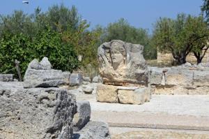 Nur wenige Hundert Meter von Canosa entfernt, umgeben von Oliven- und Weinfeldern findet man das Ausgrabungsfeld „Basilica San Leucio“, wo man unter dem vorher genannten Bischof den ebenso besagten Minerva-Tempel in eine frühchristliche Kirche mit einer Grundfläche von 55 x 53 m umgebaut hatte. Viel ist leider nicht erhalten, da Canosa über die Jahrhunderte immer wieder von Erdbeben und zerstörerischen Feinden heimgesucht wurde. Die wichtigsten Fundstücke befinden sich in einem kleinen Besucherzentrum auf dem Areal, das extra für uns aufgeschlossen wird.