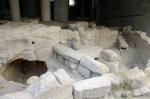Wir fahren um ein paar Ecken und stehen plötzlich vor einem Ausgrabungsfeld mitten in der Stadt, dem „Parco Archeologico di San Giovanni“. Wahrscheinlich wurde die Taufkirche des heiligen Johannes über einem heidnischen Heiligtum errichtet, denn die Römer sind inzwischen bekannt für derlei Umnutzung von Kult-Stätten. Unser Führer weist uns darauf hin, dass die Einbuchtung am Taufbecken darauf hindeute, dass es nach seiner Errichtung mit fließendem Wasser versorgt wurde. Außerdem erzählt er als großer Bewunderer vom Bischof San Sabino, der die Christianisierung Apuliens von Canosa aus vorantrieb, indem er generell heidnische Tempel mit Kirchen überbauen ließ und dazu die ursprünglichen Tempelanlagen umbaute und teilweise in alle Winde verbringen
