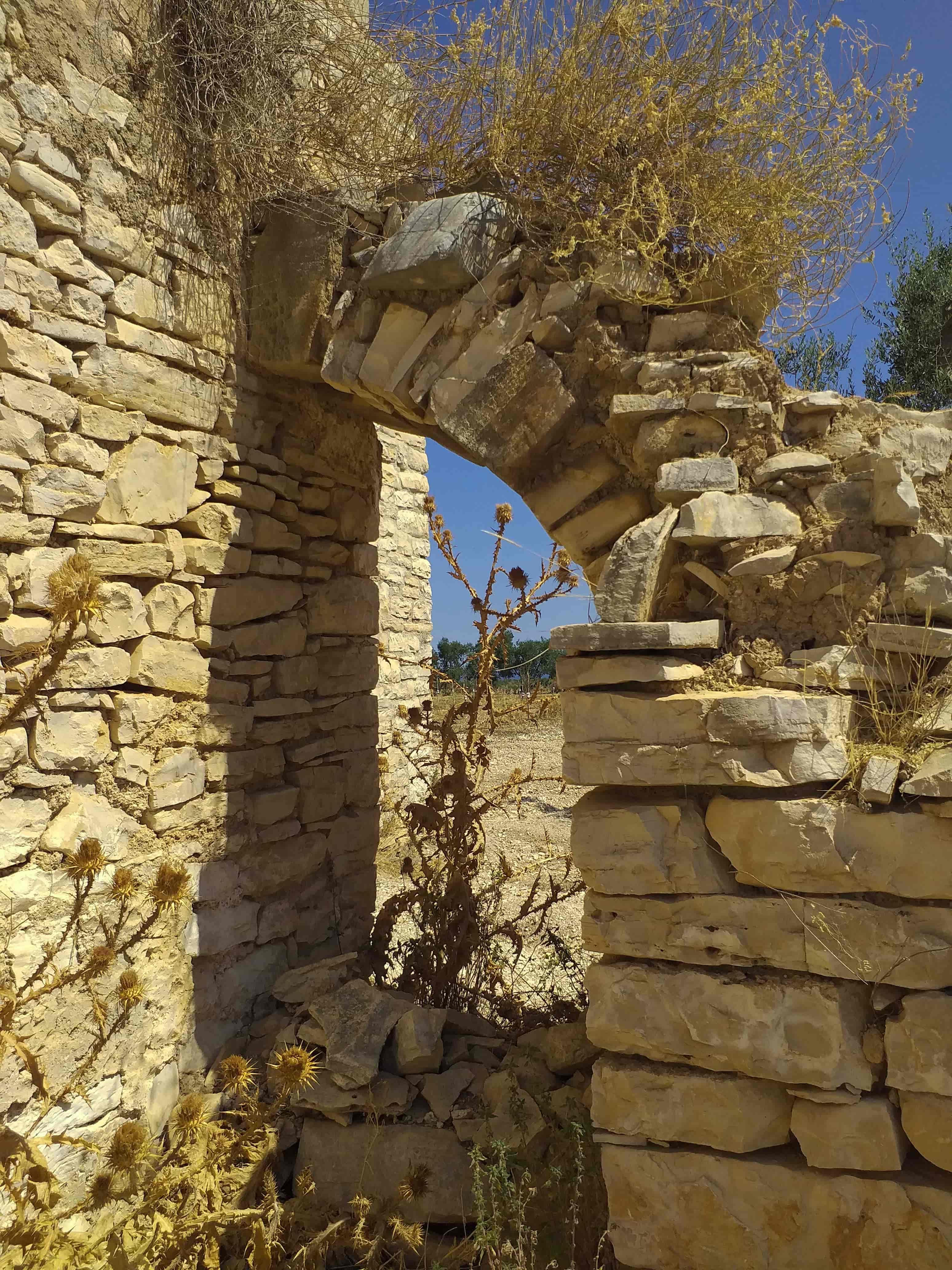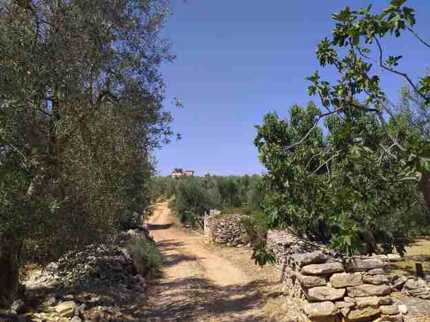Als der Weg zu schlecht wird, lasse ich den Fiat unter ein paar Olivenbäumen stehen und ihn zusammen mit meiner Familie dort zurück. Die haben alle schon genug und nicht nur mein Sohn jammert, dass er endlich auf einer richtigen Straße dem Ziel entgegen fahren will. Ich verspreche, gleich wieder da zu sein und finde nach einer Kurve und einem riesigen Feigenbaum am Ende eines ausgewaschenen Schotterweges ein ebenfalls stark verfallenes Gebäude, welches das ausgeschilderte Häuschen sein könnte. Sicher bin ich mir nicht. Aber da ich zwei riesige Hunde mit aufgestelltem Kragenfell aus dem Schlaf im Schatten der Mauer aufscheuche, lasse ich das Grübeln und verweile nicht all zulange. Erstmal sind sie bellend weggerannt, aber sie könnten auch jederzeit wiederkommen und mich verschlingen. Auf dem Rückweg pflücke ich jedoch so viele dicke, süße und unglaublich saftige Feigen, wie ich tragen kann. Zur Not hätte ich sie auf die Hunde der Baskervilles werfen können, doch die kommen glücklicherweise nicht wieder. Und so versöhne ich mit den Feigen die Mehrheit der auf mich wartenden Autoinsassen.