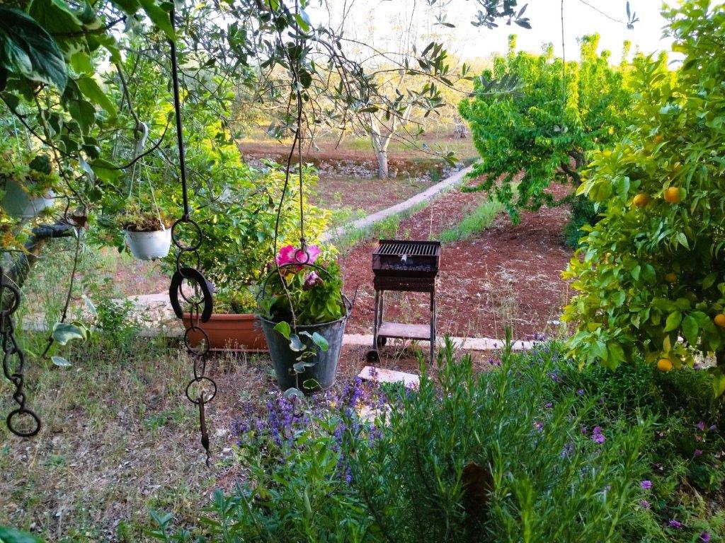 Was bei mir aber besondere Begeisterung ausgelöst hat, ist der Garten des Trullos. Hier zeigt sich das Livianna einen dunkelgrünen Daumen hat, mindestens einen: überall grünt und blüht es, in Töpfen auf Mauern und Terrassen, in Beeten, Zinkeimern… . Hier schaukelt eine Hängematte unter einer Pinie. Dort sitzt man auf rustikalen Holzbänken unter einer Pergola aus Immergrün. Direkt vor der Tür befindet sich eine weitere Sitzgelegenheit unter einer Holzlaube. Und auf der höher gelegenen Terrasse laden Liegestühle zum verweilen ein. Wem zu warm geworden ist, der kühlt sich unter der Außendusche ab. Natürlich gibt es auch ein geräumiges Badezimmer mit Dusche und Waschmaschine im Inneren des Hauses.