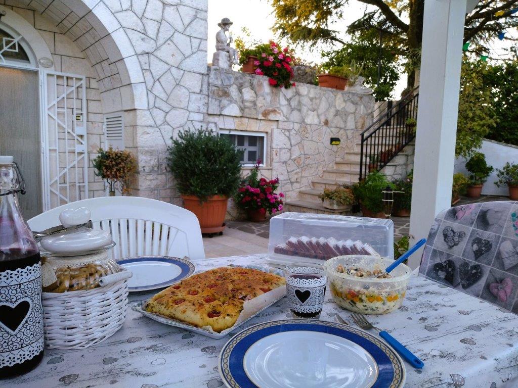 Das Beste am Trullo von Nonno Angelo bleibt jedoch der warme Willkommensgruß in Form einer hausgemachten, fluffigen Focaccia, lokalem Wein und Taralli, sowie traditionellen Keksen und einem süßen Sandkuchen als Nachtisch oder zum Frühstück. In der Saison bewirten Martino und seine Frau ihre Gäste auch mit Früchten von ihren ca. 100 Kirschbäumen, mit Feigen oder Aprikosen. Wenn man erstmal auf der Terrasse sitzt und es sich mit Blick auf Blumen und Bäume gut schmecken lässt, dann fällt sofort der Alltag von einem ab und ein wohliges Urlaubsgefühl stellt sich ein, selbst wenn man noch arbeiten muss, was bei Wifi sowohl im Haus als auf der Terrasse möglich ist. Und, was zweimal so gut geklappt hat, wird auch 2023 wieder funktionieren.