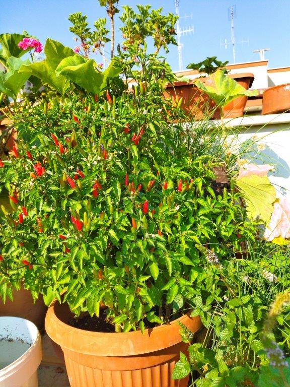 Aus unserem Sizilienurlaub im letzten Juli haben wir uns die sizilianische Variante mitgebracht. Sie erinnert deutlich an einen geöffneten Pinienzapfen und schmückt jetzt unsere Terrassenballustraden-erhöhung. Aus apulischem Lokalpatriotismus haben wir die auffällige Demonstration von Wohlstand und Fruchtbarkeit mit einem himmelblauen Keramikvogel von Anna Trani aus Grottaglie aufgelockert.
