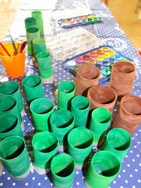 Seit unserer ersten Murmelbahn aus Klopapierrollen im Lockdown 2020 hamstert unser Kind jede leere Rolle und die Aufbewahrungstüte auf dem Balkon ist regelmäßig übervoll. Da man aber nun nicht ständig nur Murmelbahnen bauen kann, sollte es in der letzten Weihnachtszeit ein Weihnachtsbaum als Dekoration für die Treppenstufen aus dem Esszimmer hinaus zur Terrasse sein, wo die Türstoppkatzen überwintern.
