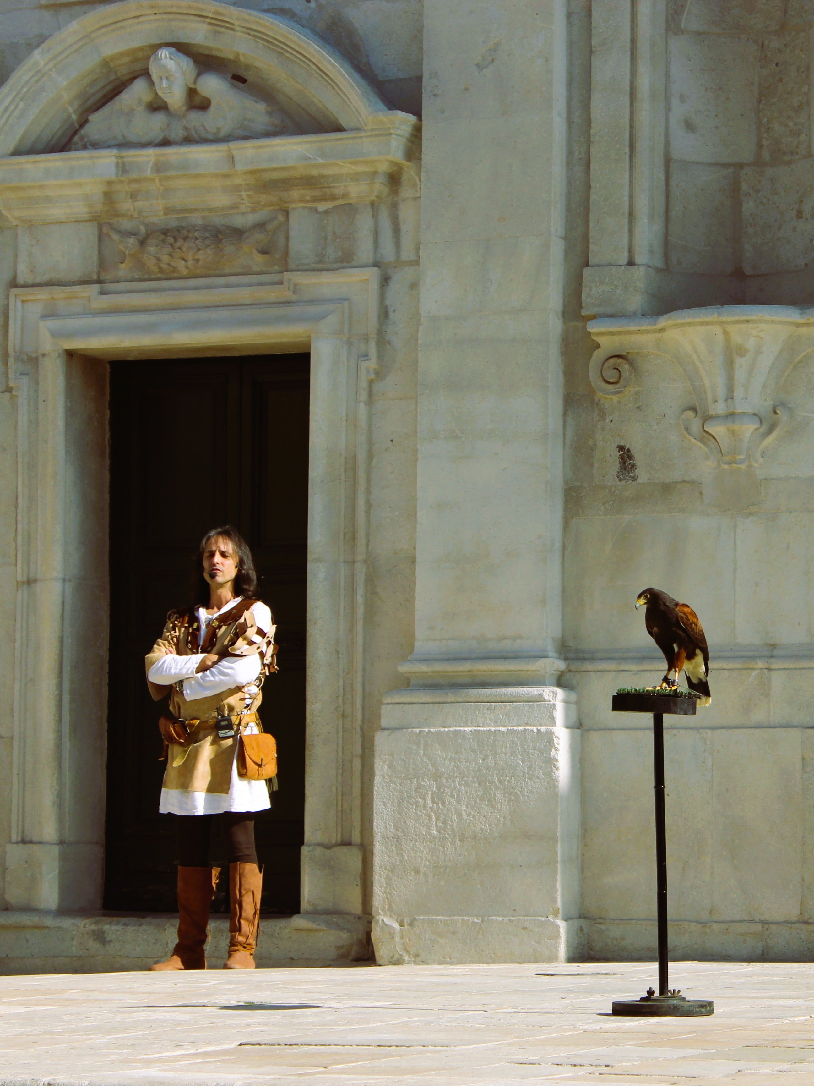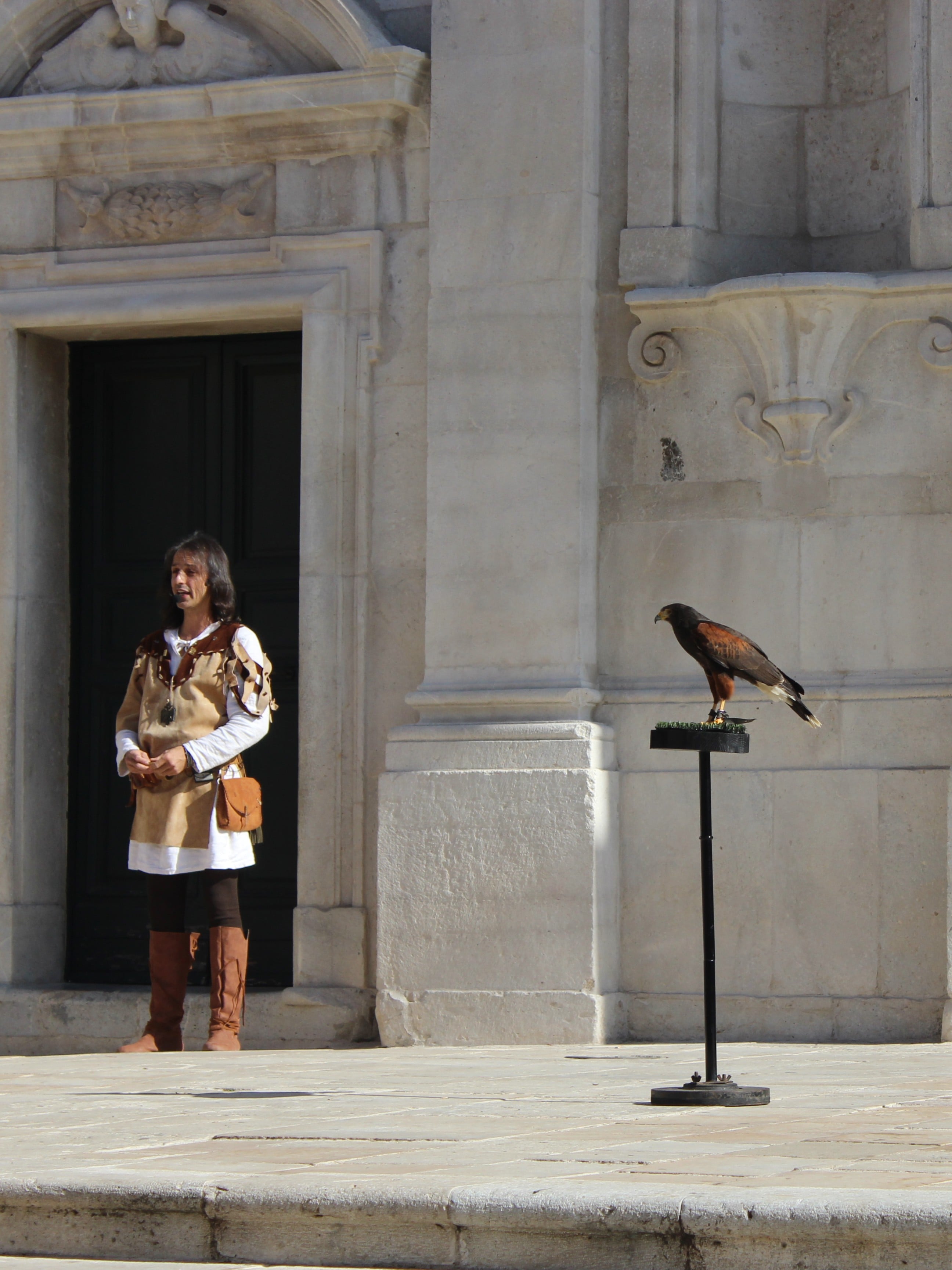 Nur wenn man ganz früh am Morgen schon durch Melfi streift, weil das mitgebrachte Kind ein früher Vogel ist, und sieht, wie die Raubvögel in Plastikkäfigen herantransportiert werden, dann wird dieser Eindruck kurzfristig geschmälert. Es ist doch irgendwie angenehmer, sich einen Falkner wie Rutger Hauer in „Ladyhawke“ vorzustellen, der seinen treuen Vogel immer auf dem Arm herumträgt, von wo aus er jederzeit in die Luft aufsteigen kann. Gut, nun ist auch nicht jeder Falke eine verzauberte Michelle Pfeiffer. Aber garantiert wird er von seinem Besitzer genauso bewundernd betrachtet. So wie von uns, die wir in der Menge stehen und staunen.