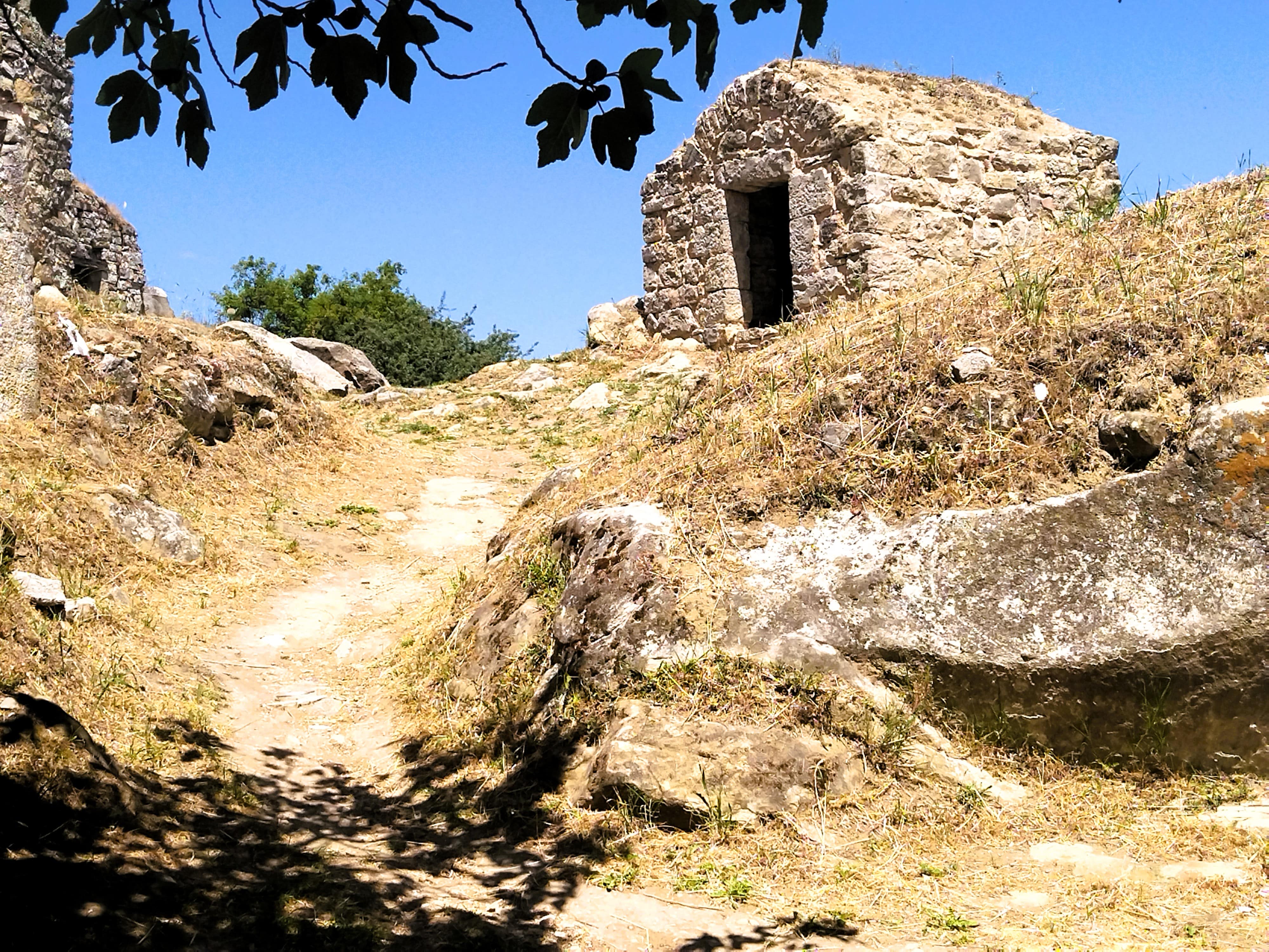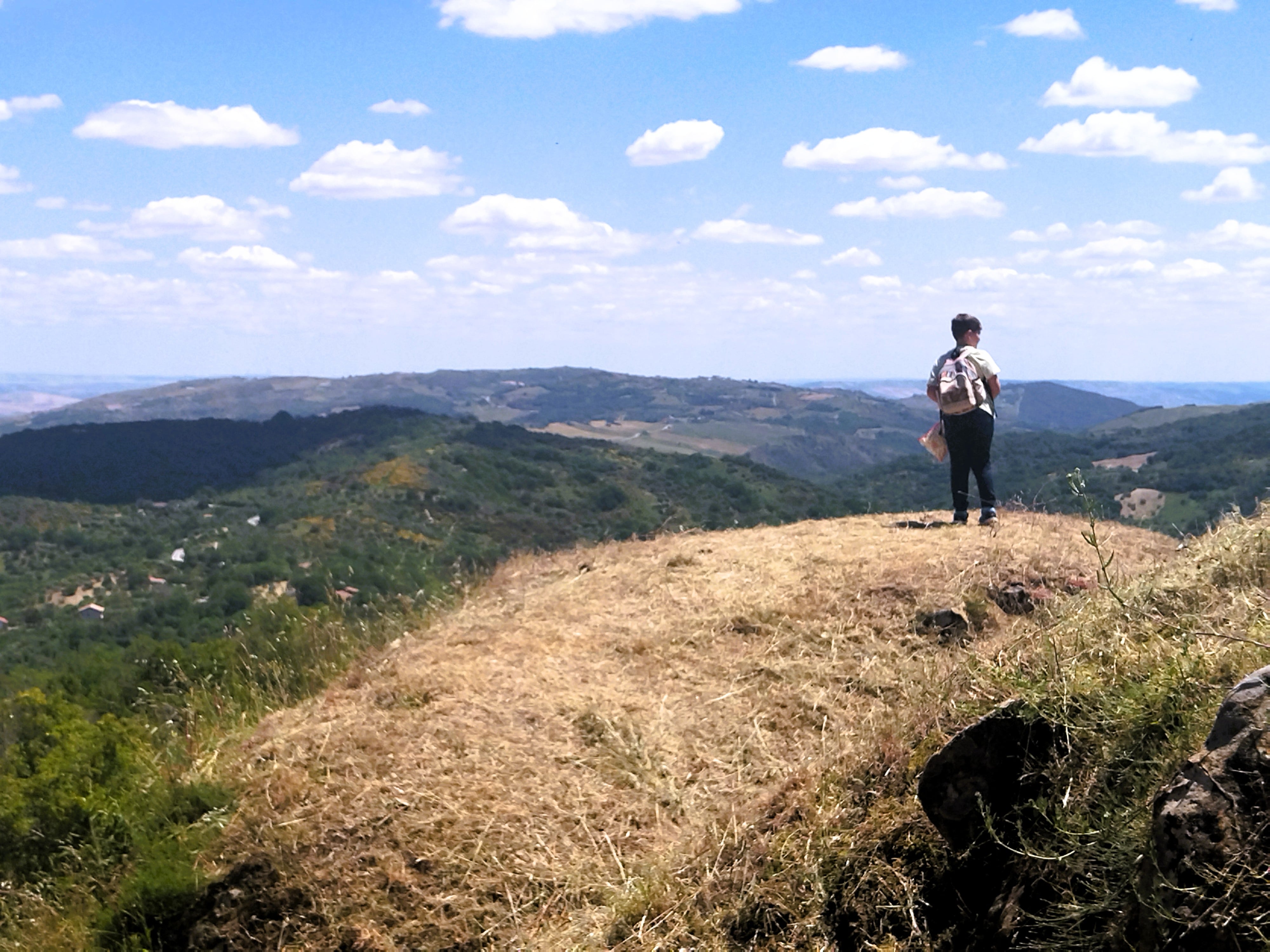 Trotzdem konnte das auf Hinweistafeln angelesene und mit eigenen Augen gewonnene Wissen die „Weinlöcher im Berg“ nicht entzaubern. Bei dieser perfekten Harmonie von bearbeiteten Steinen und Natur kann man sich gut vorstellen, dass die Palmenti als beeindruckende Kulisse für das traditionelle Feuerwerk zu Ehren des Stadtheiligen Sankt Theodosius und anderen Heiligen des Kirchenjahres genutzt werden. Außerdem bietet der Ort eine fantastische Aussicht weit über die Hügel der Umgebung hinweg. Ein perfekter Platz für uns, um innezuhalten und den Blick schweifen zu lassen, bevor es nach Lagopesole weitergehen sollte.