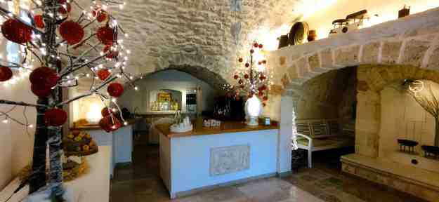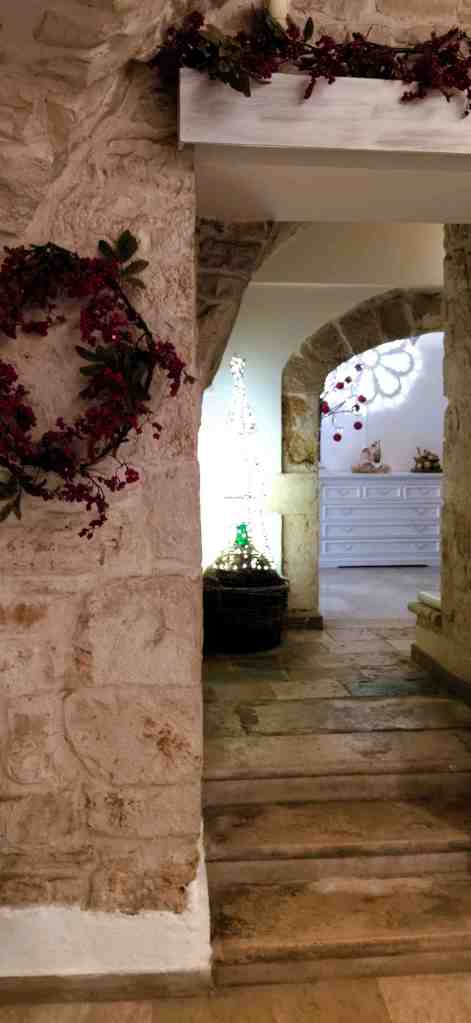 Dabei haben die aktuellen Besitzer alles sorgfältig restauriert und jetzt im Dezember natürlich weihnachtlich dekoriert. Wir waren letztes Wochenende zur Feier einer goldenen Hochzeit ins Kaminzimmer der Masseria eingeladen und von der tollen Atmosphäre, dem gepflegten Garten und der liebevollen Ausstattung komplett überwältigt. Egal wohin unsere Blicke fielen, es gab immer etwas, an dem sie hängen geblieben sind.