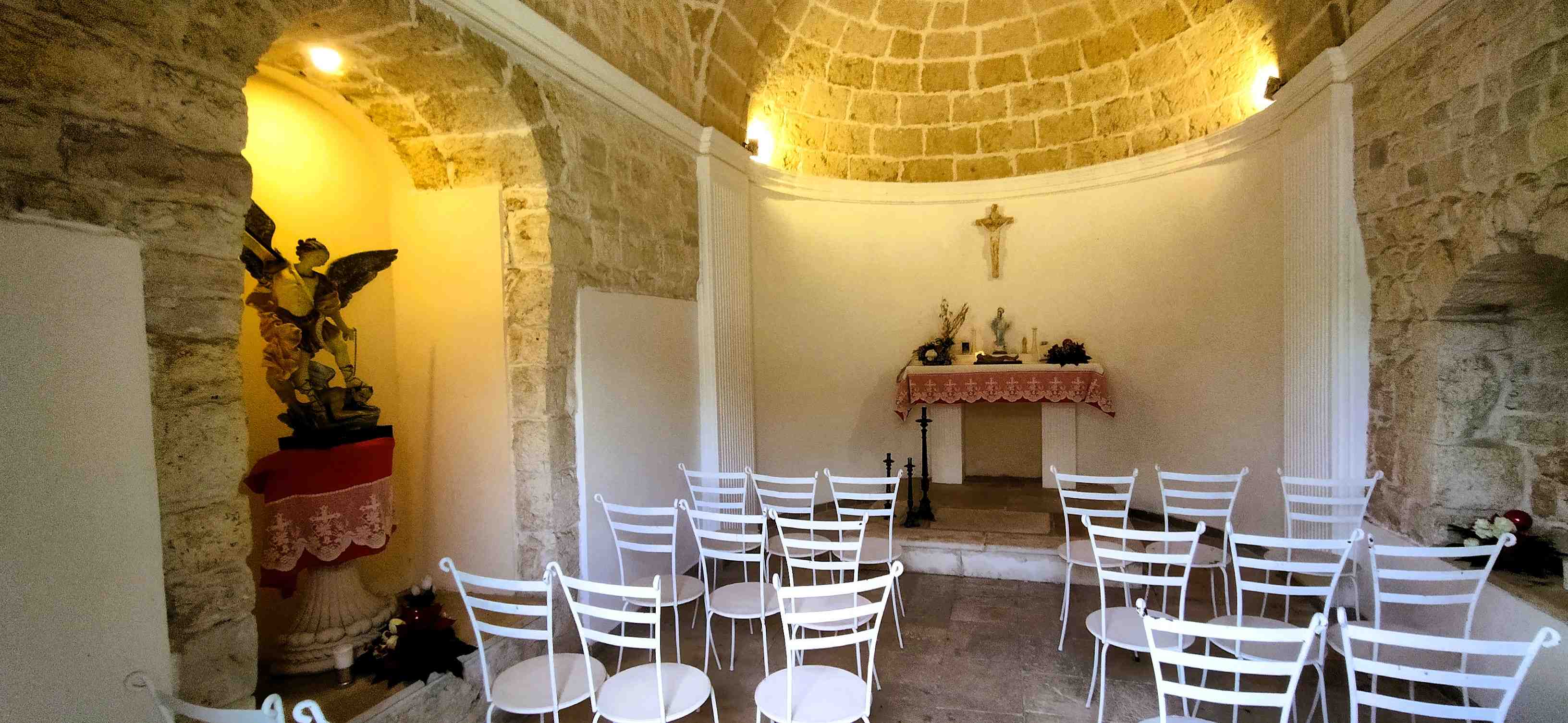 In der Masseria Cariello Nuovo versteckt inmitten von Obsthainen und Weinreben schließen sich an ein großes Hauptgebäude mit der Herrenwohnung im Obergeschoss, deren Zimmer heute Hochzeitsgesellschaften zum Umkleiden dienen, ein Stallgebäude und die Werkstätten an. Außerdem gibt es eine kleine, nicht geweihte Kapelle, die zu Ehren des Heiligen Michael erbaut wurde.