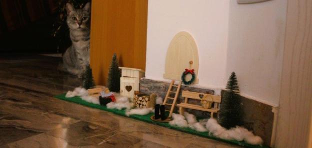 Nach dem Film geht Lasse zu Bett, denn am nächsten Morgen will Papa ihn zeitig abholen. Die zwei Weihnachtsfeiertage verbringt er bei ihm und dessen neuer Frau und er wird endlich seine neue Schwester kennenlernen. Tief unten in Lasses Reisetasche liegt die kleine Schachtel mit der Wichteltür und dem Zubehör. Mit Bente zusammen hat er vor ein paar Tagen noch einen niedlichen Wichtelmann mit rot-grün-geringelten Socken und einer grünen Mütze mit einem winzigen Glöckchen daran gebastelt. So ein echter Weihanchtswichtel hat wirklich was drauf! Der Dekorations-Wichtelmann wird künftig auf der kleinen Bank aus Holz vor der Tür sitzen und seinem Vater bestimmt Glück bringen auch, wenn es nicht der richtige Bente ist. Wie üblich schaut Lasse noch einmal unter sein Bett, um seinem Freund Gute Nacht zu sagen. Da fällt sein Blick auf das leere Schüsselchen und eine angebissene Mandel. Er lächelt. „Hey, Bente!“, sagte er. „God Jul! Frohe Weihnachten!“ Aber unterm Bett und im Schuh bleibt alles ruhig. „Bente?“ fragt Lasse. Keine Antwort. Er schlüpft unter das Bett und angelt nach seinem alten Sportschuh.