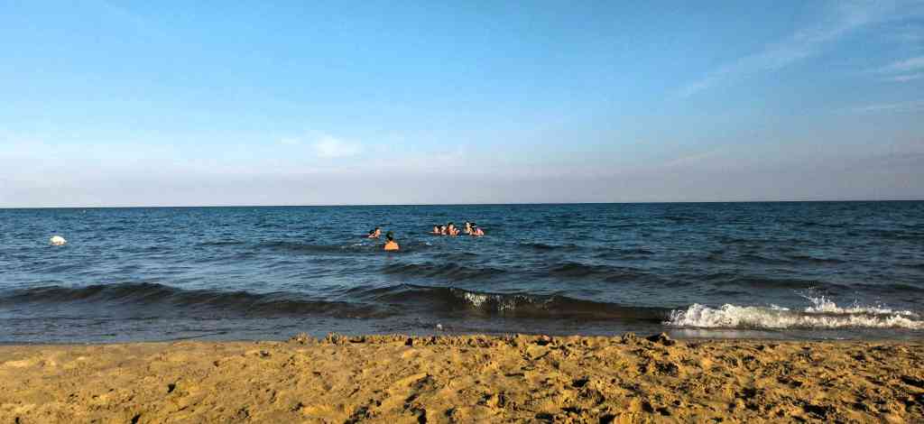 Vom fünten bis achten September war es auch kein Problem, eine Übernachtungs- möglichkeit direkt an der Strandpromenade zu bekommen, wo man in der Hochsaison gerantiert kein Auge zukriegt, aber im September gemütlich logiert, das Wasser direkt vor der Haustür. So konnten wir auch dieses Mal schon um 8 Uhr im Wasser sein, nach dem ersten Bad im Meer in der Strandbar Cappucino trinken und Croissants essen. Nach anfänglichem Erstaunen seitens des Personals bekam mein Kind sogar einen Hotdog zum Frühstück. Ich glaube, die wundern sich eigentlich über gar nichts.