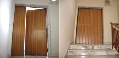portaAber nun sollte sich in dieser Sache alles zum Besten wenden. Beim Türeinbau am Freitagmorgen wollte auch Luigi zugegen sein. Kurz vor acht waren wir in unserer Wohnung, innerlich darauf eingestellt, dass wir mindestens eine halbe Stunde auf die Türfritzen warten müssen würden. Doch pünktlich um acht – wir waren noch damit beschäftigt, uns an den Blättern der Obstbäume und den ersten rundlichen Radieschen zu ergötzen – klingelte Luigis Handy. Die Handwerker standen bereits vor der Haustür und fragten sich, warum wir nicht aufmachten. Pünktliche Italiener! Meine Begeisterung kannte keine Grenzen. Schnell ließen wir sie ein und genossen das zweistündige Hämmern, das Bohren, das Brechen von Holz, das leise Rieseln des Putzes und schließlich die Vorführung des modernen Sicherheitsschlosses wie unlängst eine Symphonie im Teatro Petruzzelli mit dem Unterschied, dass dieses Stück allein für uns gespielt wurde. … und für Signora Calabrese, die zwischendurch aus dem ersten Stock zu uns nach oben kam, selbstverständlich nur, um uns zu unserer Wohnung zu gratulieren und zu fragen, ob wir nun bald einziehen würden.