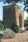 Den Triumphbogen, der über acht Meter hoch (!) sein soll und in der Vergangenheit vielleicht auch als Stadttor fungierte, haben wir übersehen. (Wie jetzt?) Auf der Rückfahrt stellt sich zum Glück heraus, warum. (Sonst hätte ich für immer an mir gezweifelt.): Das Gemüsefeld ist inzwischen einer Baumschule gewichen, die einen hohen Zaun um das Areal errichtet und einen halben Wald angepflanzt hat. Von der anderen Seite der Baumschule hat man jedoch einen schönen Blick auf eine gepflegte Anlage, die der historischen Stätte gerecht wird. Leider ist es Sonntag und die Baumschule ist geschlossen. Wenn man näher an den Triumphbogen heran möchte, sollte man das und die Schließung um den Feiertag Ferragosto (15.08.) herum einkalkulieren.