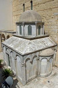 Die Kathedrale suchen wir vor allem auf, um das Mausoleum des normannischen Helden Bohemund zu sehen. Für Apulien war „Boemondo“ eine wichtige Figur, weil er als einer der Anführer am ersten Kreuzzug teilnahm und – anders als Friedrich II. später – dafür sorgte, dass der Papst der Region Tarent und Bohemunds Familie, die damals auch Apulien beherrschte, gewogen blieb. Das im Auftrag seiner Mutter erbaute Mausoleum erinnert sicher nicht zufällig an orientalische Bauten und sollte die Verbundenheit des Verstorbenen mit San Sabino deutlich machen. Es befindet sich als Anbau neben der Kathedrale und stand bei seiner Erbauung wahrscheinlich nicht eineinhalb Meter tief unter der Erde.