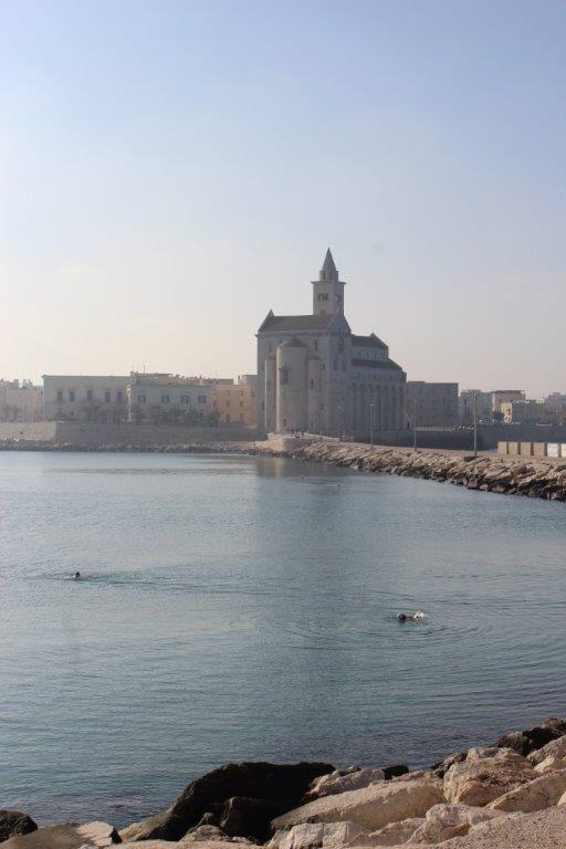 Für alle diejenigen, die es auf dem obigen Bild nicht erkennen sollten oder es nicht glauben können, hier ein weiterer fotografischer Beweis dafür, dass am zweiten Advent in Trani noch gebadet wurde. Wir sahen auch viele sich sonnende Mitmenschen wie Robben auf den Steinen der Hafenmole liegen und ihre Gesichter in die Dezembersonne halten.