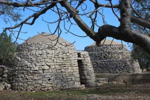 Zwei Pajare in einem Olivenhain unweit des Dolmen. Sie illustrieren eindrücklich, dass sich die traditionelle Bauweise seit der Bronzezeit gar nicht so sehr verändert hat.