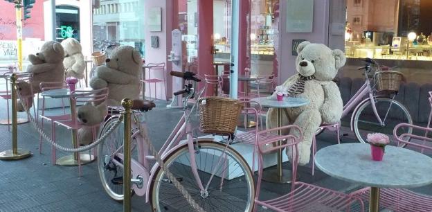 Seit ein paar Wochen fallen mir immer wieder diese bärigen Abstandshalter in einem Caffé am Corso Cavour in Bari auf. Wer keinen menschlichen Kontakt wünscht, setzt sich einfach auf einen Kaffee zu ihnen. Abgesehen davon schauen sie schmunzelnd auf die ebenso schmunzelnd Vorbeigehenden.