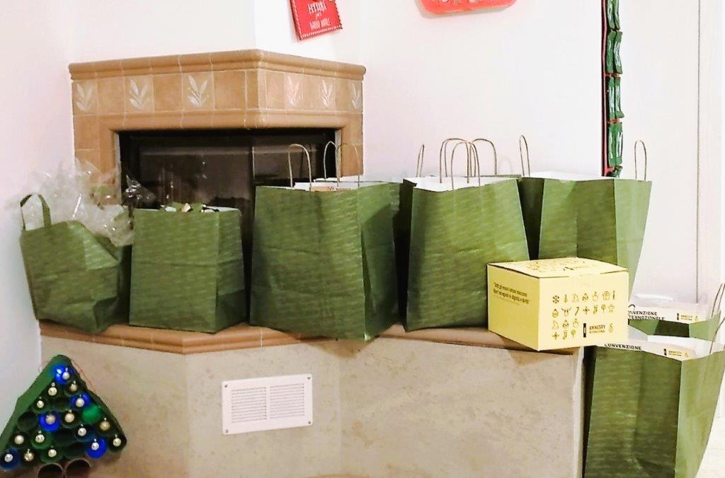 Auch wir persönlich schlugen in diesem Jahr voll in die Panettone-Kerbe, denn mit Hilfe eines Freundes, der sich bei Amnesty International engagiert, verschenkte die Klasse unseres Sohnes Davide Amnesty-Panettones an alle 6 Lehrerinnen. Diese extrem leckere nicht nur mit Scholade gefüllte, sondern auch damit überzogende Sünde wird jedes Jahr von einem Handwerksbetrieb auf Sizilien produziert. Logisch, dass einer davon auch auf unserem Tisch landete!