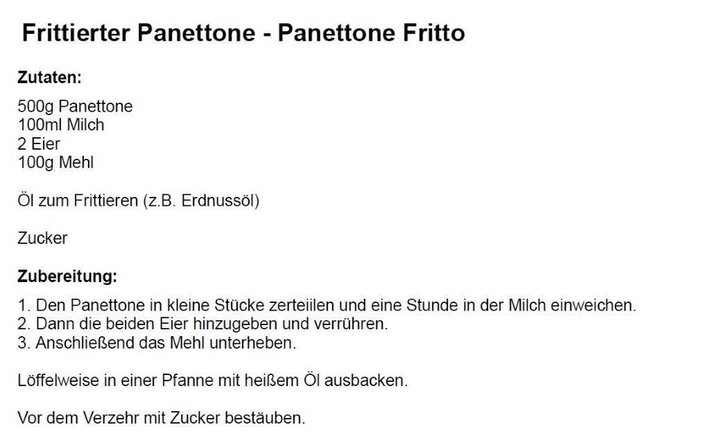 .. und was, wenn man nach all den Wochen voller Süßigkeiten und Panettone ebendiesen weder weiterverschenken, geschweige denn mehr sehen oder gar riechen kann? Dann setzt man dem Ganzen einfach eine oder zwei Kalorien obendrauf und frittiert den kläglichen Rest.