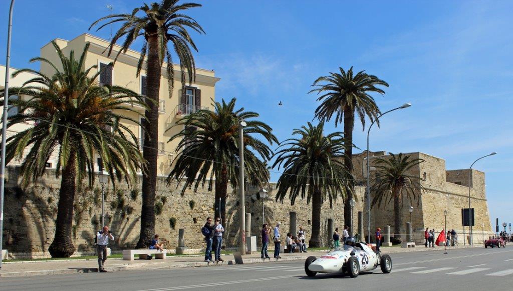 Grand Premio di Bari 2015 16Am letzten Sonntag war es wieder soweit: der Old Cars Club Bari hatte die vierte Wiederauferstehung des „Gran Premio di Bari“, eines noch bis in die 50 Jahre des letzten Jahrhunderts tatsächlich in Bari stattfindenden Autorennens, organisiert und durchgeführt. Rund um die Altstadt konnte man das Röhren der ca. 50 sportlichen Motoren hören sowie die Oldtimer-Rennautos und ihre Piloten bestaunen und natürlich anfeuern. Unter den Wagen fanden sich so klangvolle Autonamen wie Ferrari, Alfa Romeo, Maserati und Lotus, aber auch Namen, die ich als Ästhetin ohne Fachwissen vorher noch nie gehört habe wie Stanguellini, Apache, Cisitalia oder Taraschi.