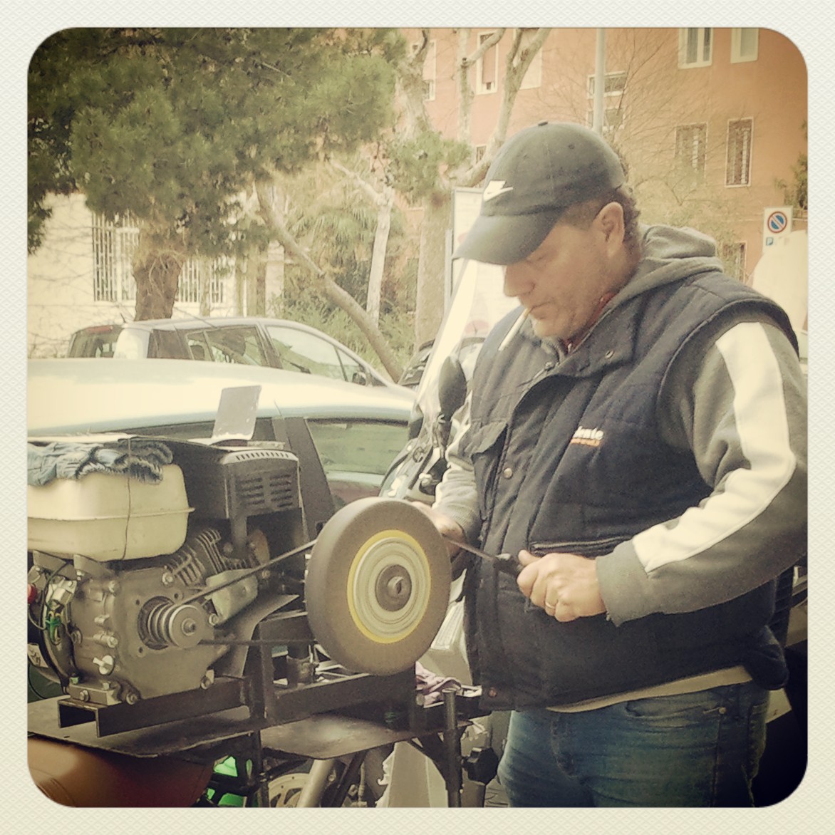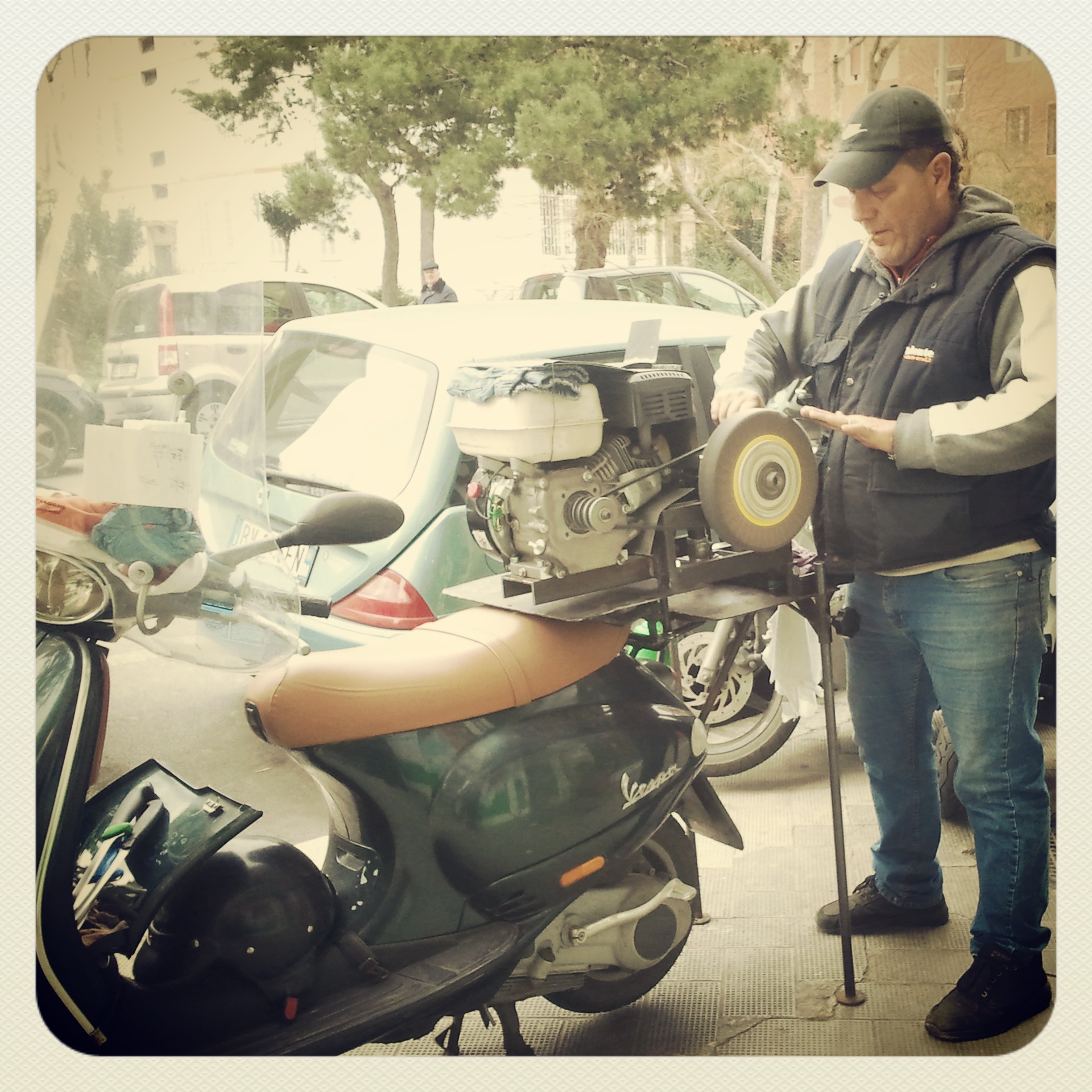 „…è arrivato l’arrotino!“ hört man es in Apulien gelegentlich noch durch die Straßen hallen. „Si affilano coltelli, forbici e lame di rasoi!“* Dann ist der Scherenschleifer wieder in der Stadt. Er hält vorrangig an den Fleischerein, welche die