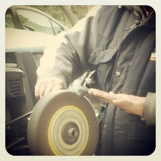 Dienste dieses aussterbenden Handwerks gern in Anspruch nehmen. Aber auch Privatpersonen nutzen die Gelegenheit und lassen ihre Messer oder Scheren schärfen. Man muss nur schnell genug auf den Beinen sein. Denn der Scherenschleifer ist heutzutage doppelt motorisiert unterwegs.