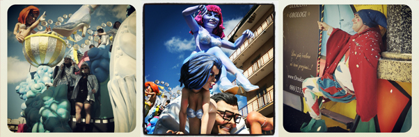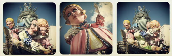 "Roma", Carnevale di Putignano 2013Endlich erreichte uns nicht mehr nur das Wummern der Bässe, sondern auch der erste Wagen. Auf ihm waren Schauspieler aus dem Episodenfilm „Amarcord“ (1973) als riesige Pappmaschee-Figuren ausgestellt. Unterbrochen von den tänzerischen Darbietungen mitwirkender Vereine und Schulen folgte ein beeindruckender Exkurs in die Kinogeschichte mit bunten Wagen zu so bekannten Filmen wie „La Dolce Vita“ (1960), „Rom“ (1972), „Casanova“ (1976) oder „Stadt der