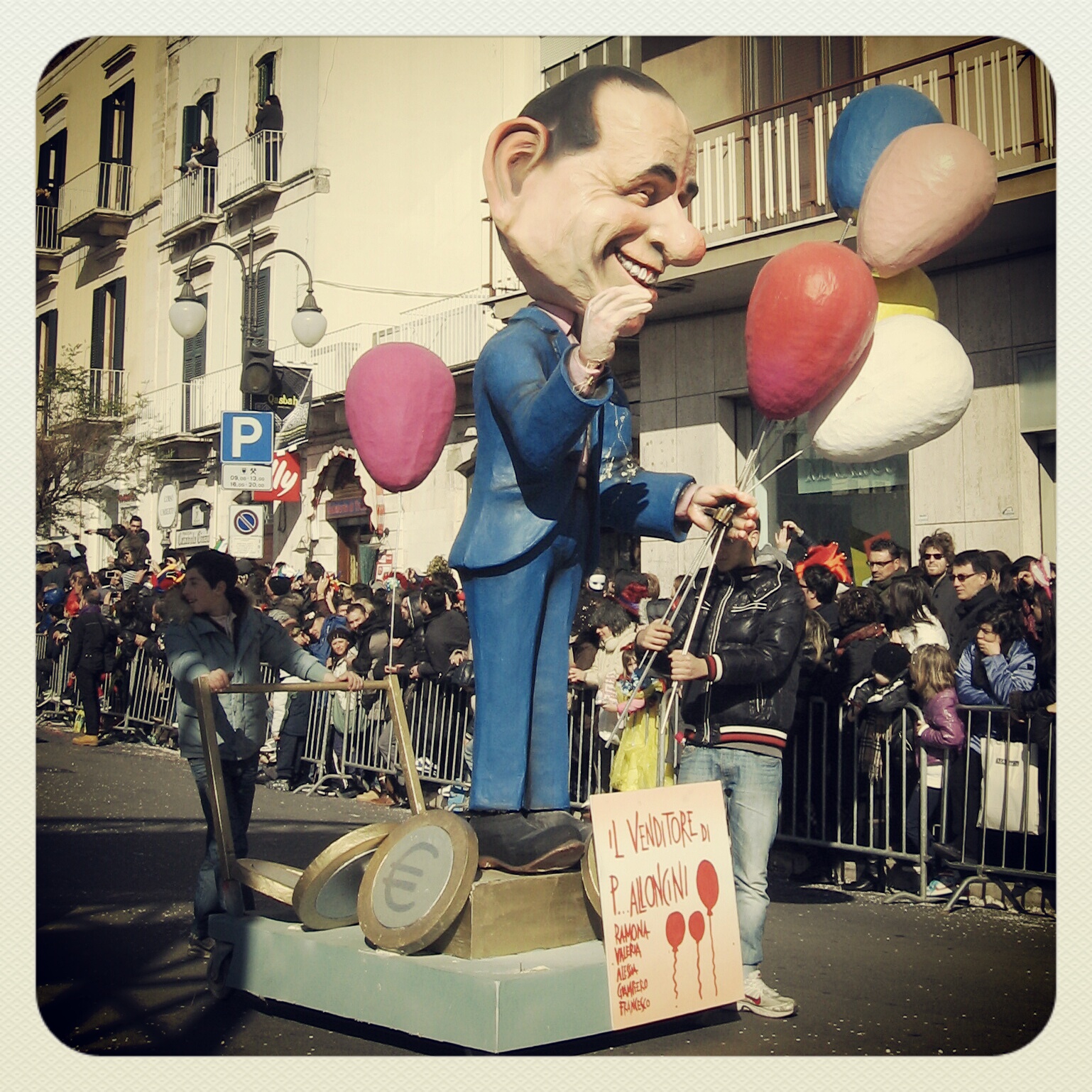 Berlusconi - Venditore di PallonciniVom Aufstand der unteren gegen die höherstehenden Klassen oder von kontroversen Momenten, in denen die Missetaten der Mächtigen kritisiert werden, was sonst Fasching und Karneval so vergnüglich macht, war durch das gewählte Motto nicht viel zu merken. Nur Berlusconi, der im aktuellen Wahlkampf zusammen mit vielen anderen Politikern wieder unglaublich viel heiße Luft produziert, wurde als Ballonverkäufer auf den Arm genommen.