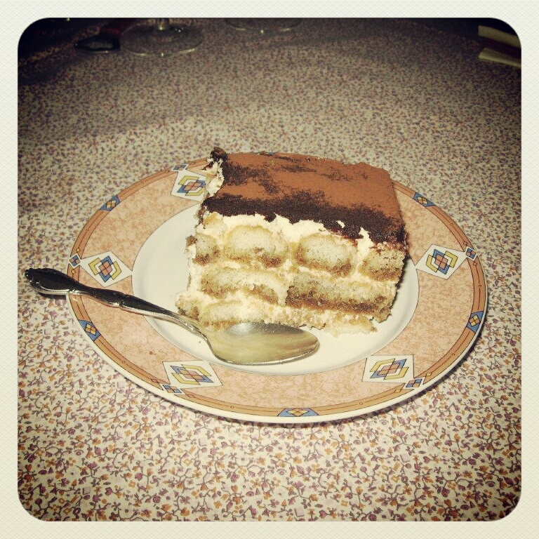 IMG_20130120_172210Pasquale, der ein ausgemachter Naschkater ist, grinste erfreut von einem Ohr zum anderen, als er das Tiramisu im Kühlschrank entdeckte. Er präsentierte es heute Mittag am Tisch wie eine Trophäe und auch Maria lobte die Konsistenz und den Geschmack. Falls ihr noch kosten möchtet, dann müsst ihr euch wirklich beeilen, denn der klägliche Rest, den wir wegen der vorhergehenden vier Gänge übrig lassen mussten, wird das Abendessen sicherlich nicht überleben.