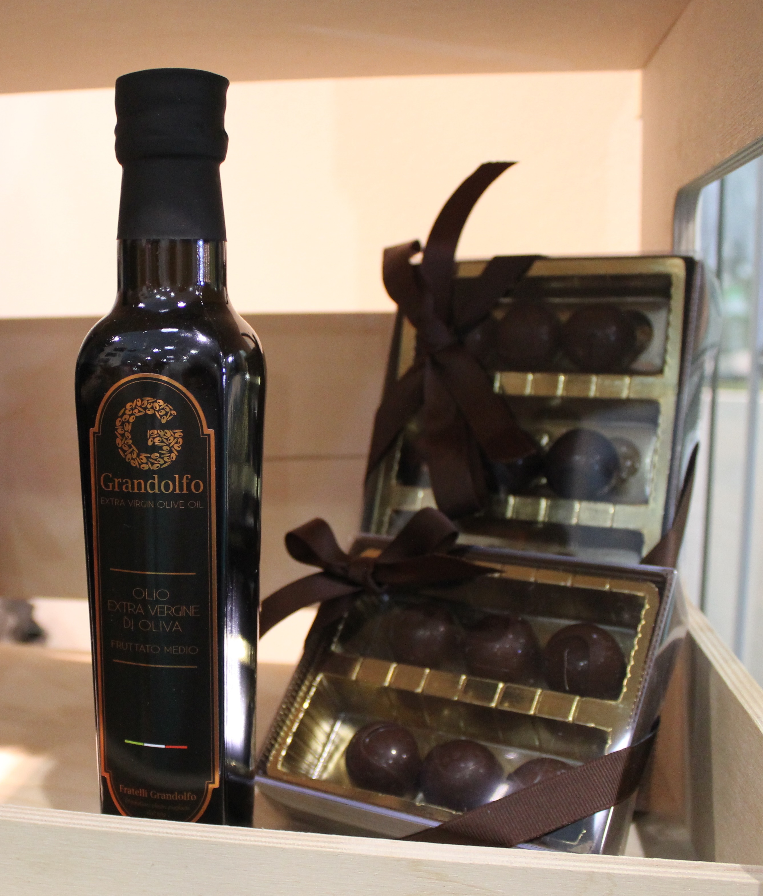 Kurze Wege, Verzicht auf chemische Düngung und im Nacken die Angst vor dem Bakterium Xylella, das sich im Moment in Apulien verbreitet und wegen dem bereits Hektar-weise Olivenhaine im Salent abgeholzt werden mussten – so ein Olivenanbauer hat offensichtlich an Vieles zu denken, unter anderem auch an neue Verwendungs- oder Kombinationsmöglichkeiten wie bei Grandolfo in Schokolade oder bei der Cooperativa Agricoltura Progresso aus Terlizzi, deren mit Basilikum, Limone, Pfefferminz oder Zwiebeln aromatisierte Öle geschmacklich ihrem gehobenen Preis von 6 Euro für 250 ml Öl voll gerecht werden.